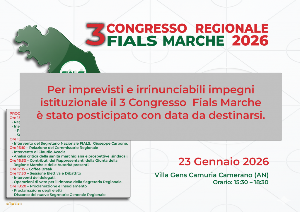 Rinviato il 3 Congresso Regionale Fials